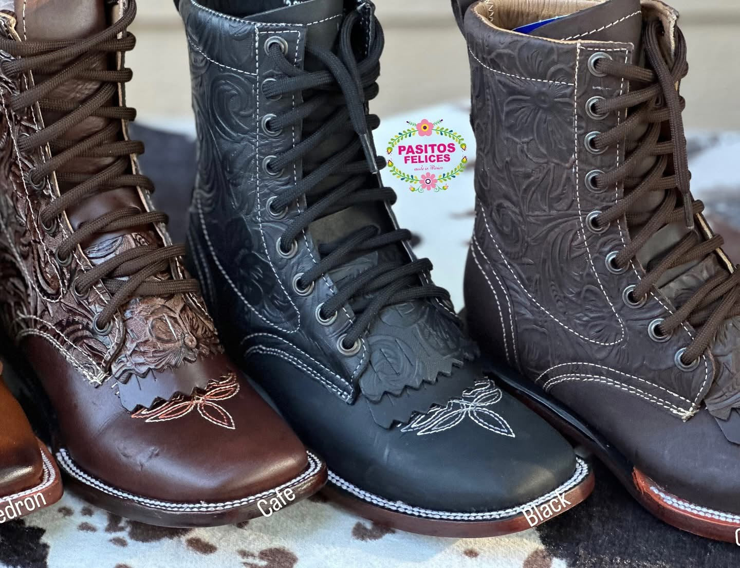 • Cargar imagen en el visor de la galería, Botas Lacer - Black Leather Tooled Boots