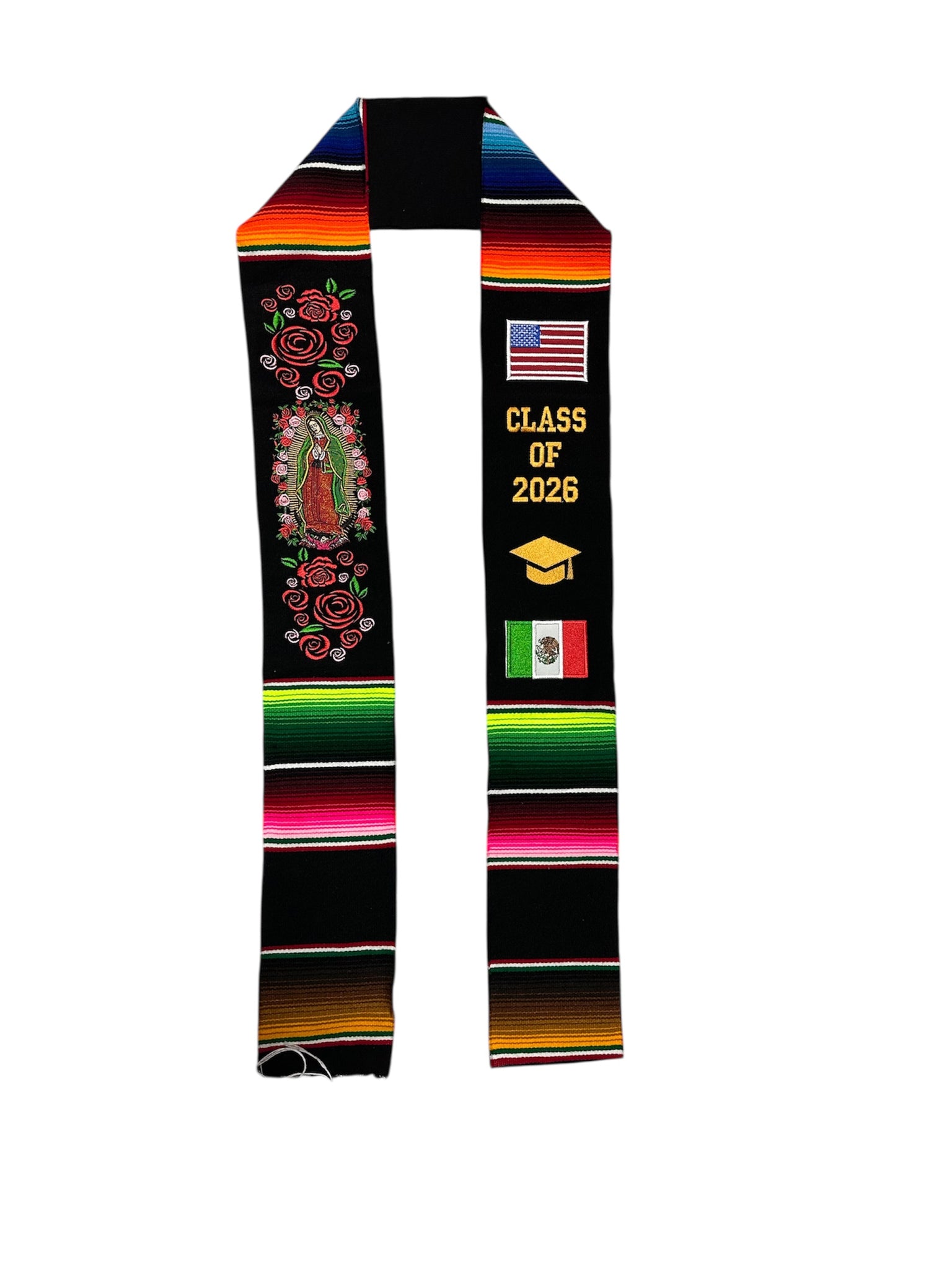 2026 Virgen w flags - Pink Red Roses Black Stole Sarape Sash preorder