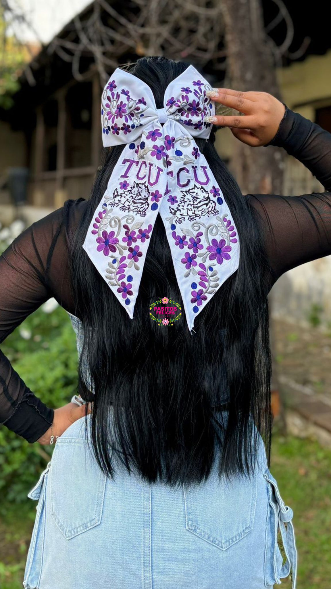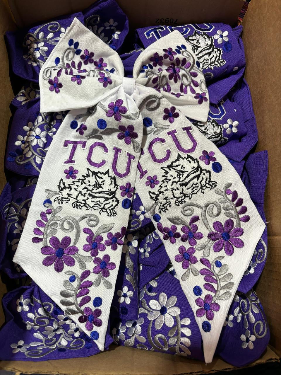 TCU White Embroidered Bow - Moño Blanco