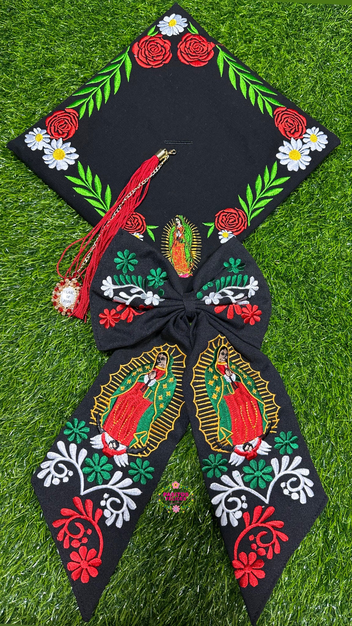 • Load image into Gallery viewer, Mexico Virgen Embroidered graduation cap topper